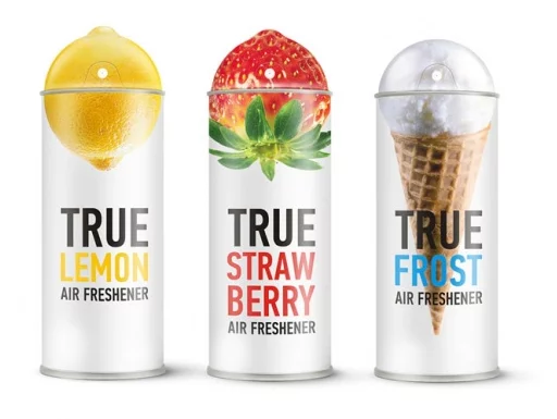 The manufacturer of these air fresheners clearly had this question in mind when creating the packaging. Here it supports multiple scents of air freshener (and potential future ones) by clearly distinguishing the different scents while still retaining the uniform look of the product. Also, it gives it a unique touch by using the caps as the unique identifier. Simple in its cleverness.